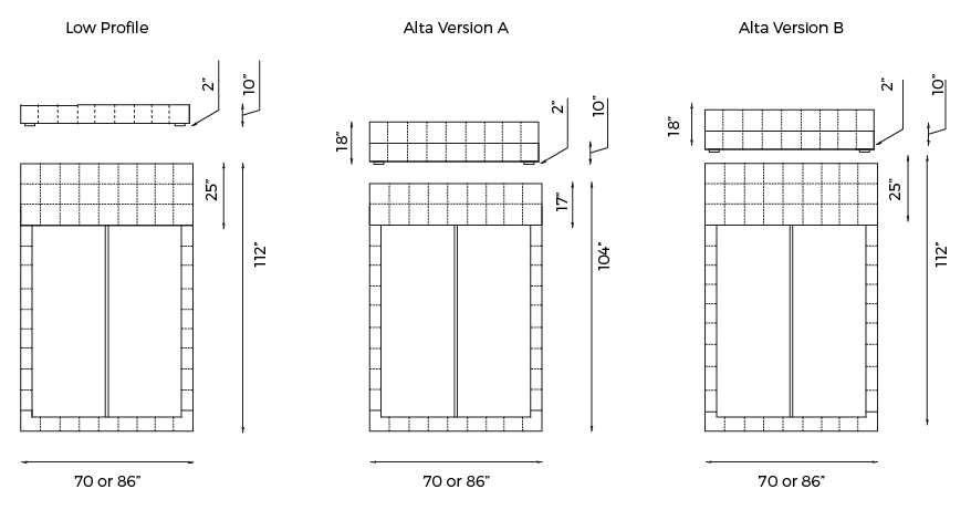 Wood and wood particleboard covered in polyurethane foam and polyamide velveteen. The bed has a central bar and supports that can be adjusted in height for the bed base, these supports allow the height of the bed base and mattress to be varied by 4.5".