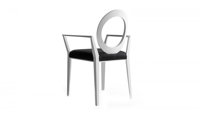 Characterized by an elegant wrap around backrest made with slats of curved solid wood - rich in details and skillyfully crafted, the Gemma chair is a sophisticated and memorable piece.