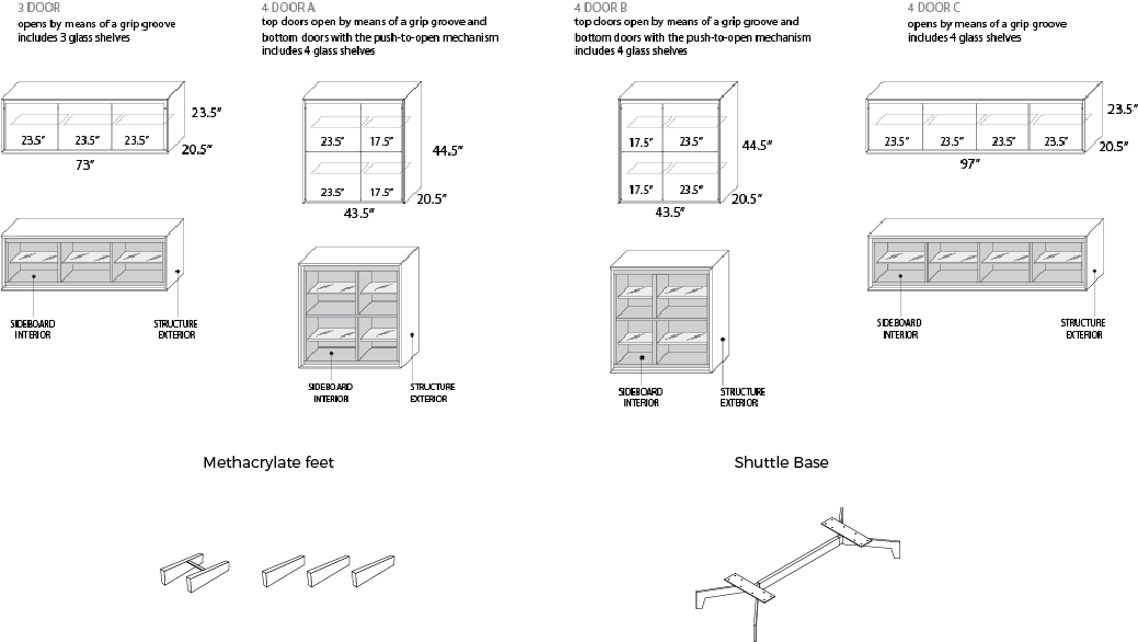 Neck sideboard is simple and classy with a smooth surface. It is also possible to differentiate the color of the exterior carcass from its interior.
